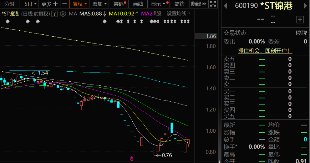 5月29日,*ST锦港收到辽宁证监局的《行政处罚决定书》,认定公司及相关责任人员存在多项违法事实,公司股票已于5月30日起停牌。